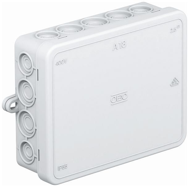 Der Artikel OBO Bettermann 2000410 OBO A 18 Kabelabzweigkasten 125x100x38 lichtgrau ist derzeit auf Lager
