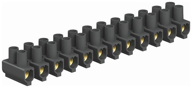 Klemmen Messing, Schrauben Stahl, galvanisch verzinkt und transparent passiviert, 12-polige, in Einzelklemmen abtrennbare Leisten.