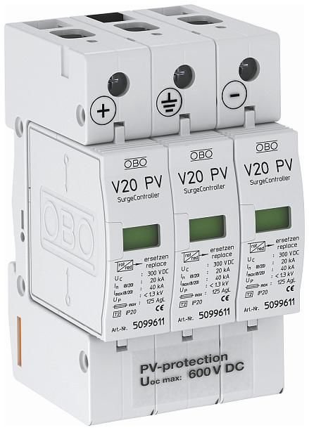 OBO Bettermann 5094605 OBO V20-C 3PH-600 SurgeController V20 3pol 600VDC für PV-Anlagen