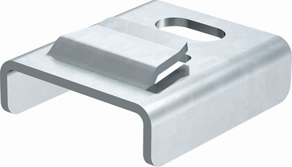 Es wird in einem Abstand von maximal 100 mm vom Ausleger auf den Untergurt des Leiterholms gesteckt. Nach Montage der Gewindestange ist das Anschlussbauteil gegen Abrutschen gesichert.