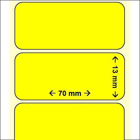 Der Artikel OEM-Factory Etiketten - PVC 70x13mm, perm., K40, gelb glänzend ist derzeit auf Lager