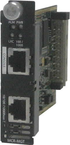 MCR-MGT- Management Module for the MCR chassis. 10/100/1000 ethernet RJ45, serial console port RJ45, SNMP read/write, Telnet/SSH and Internet Browser access and advanced security