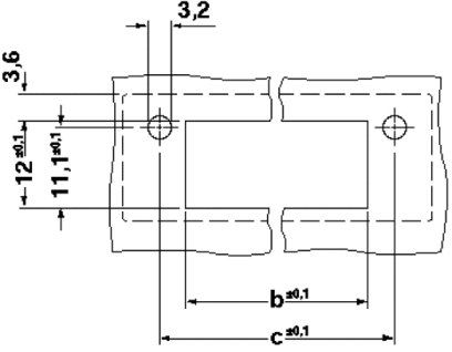 Außen: Steckanschluss für entsprechende MSTB 2,5- oder FKC 2,5-SteckerBefestigung in bis zu 6 mm dicken Gehäusewänden ist mit zwei M3 x 10 Schrauben möglich
