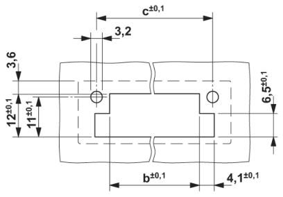 Befestigung in bis zu 6 mm dicken Gehäusewänden ist mit zwei M3 x 10 Schrauben möglichAußen: Steckanschluss für entsprechende MSTB 2,5- oder FKC 2,5-Stecker