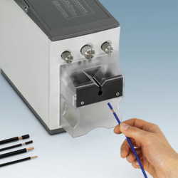 Die Klemmkraft stellt sich automatisch auf die erforderliche Abzugskraft einKompakter Abisolierautomat für das automatische Abisolieren von Leitern mit 0,08 bis 6 mm² Querschnitt