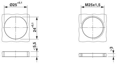 Anwendungsspezifische Wandmontage wahlweise mit Gewinde oder Verdrehschutz und Kontermutter