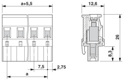 Varianten mit Schraubflansch im Raster 7,62 mmSteckrichtung vertikal zur Leiterachse