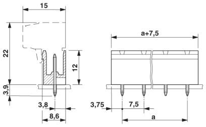 Steckrichtung vertikal zur LeiterplatteGrundgehäuse mit geraden Lötstiften für 630-V-Applikationen (III/2)