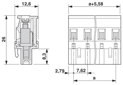 Varianten mit Schraubflansch im Raster 7,62 mmSteckrichtung vertikal zur Leiterachse