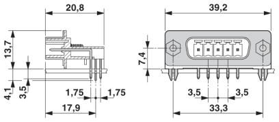 Kombination aus MINI-COMBICON-Steckverbinder und den guten Schirmeigenschaften und der Geometrie von D-SUB-SteckverbindernEinsetzbar in ein handelsübliches D-SUB-Gehäuses