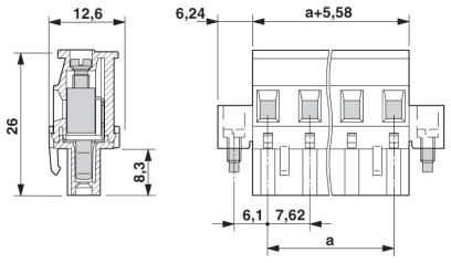 Varianten mit Schraubflansch im Raster 7,62 mmSteckrichtung vertikal zur Leiterachse