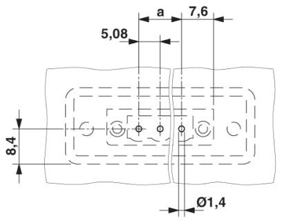 Außen Steckanschluss für die entsprechenden MSTB 2,5- bzw. FKC 2,5-SteckerInnen mit horizontalem bzw. vertikalem Lötanschluss