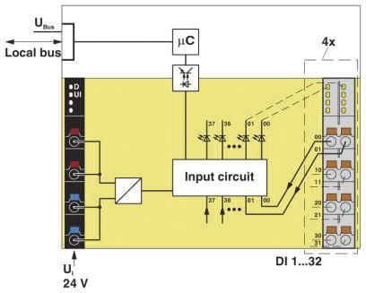 32 digitale Eingänge gemäß EN 61131-2 Typ 1 und Typ 324 V DC, 2,4 mA