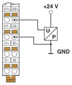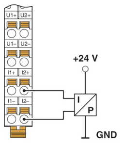 8 analoge, bipolare Eingabekanäle zum wahlweisen Anschluss von Spannungs- oder StromsignalenAnschluss der Sensoren in 2-Leiter-Technik
