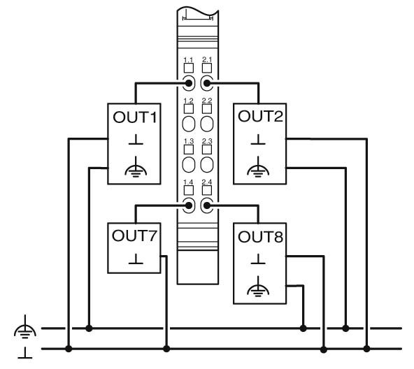 8 digitale AusgängeAnschluss der Aktoren in 1-Leitertechnik