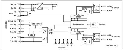 Hochwertige galvanische Trennung zwischen allen Schnittstellen (INTERBUS // LWL-Ports // Versorgung // Tragschienen-Busverbinder)
