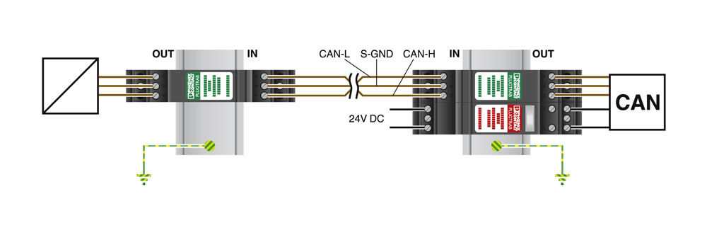Schutz für zwei separate erdpotenzialfrei betriebene Signalkreise