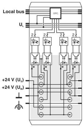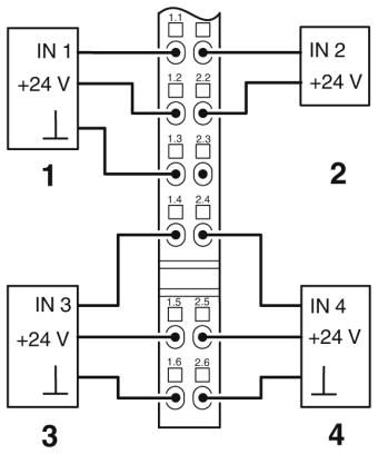 4 digitale EingängeAnschluss der Sensoren in 2- und 3-Leiter-Technik