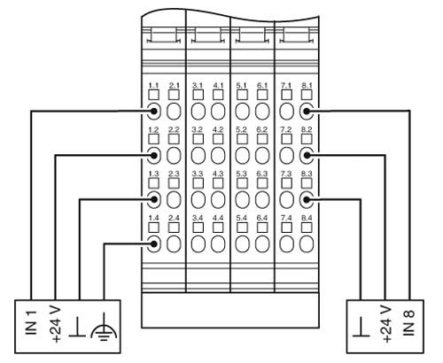 8 digitale EingängeAnschluss der Sensoren in 2-, 3- und 4-Leitertechnik