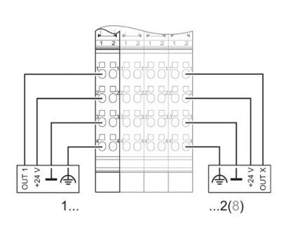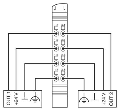 2 digitale AusgängeAnschluss der Aktoren in 2-, 3- und 4-Leitertechnik