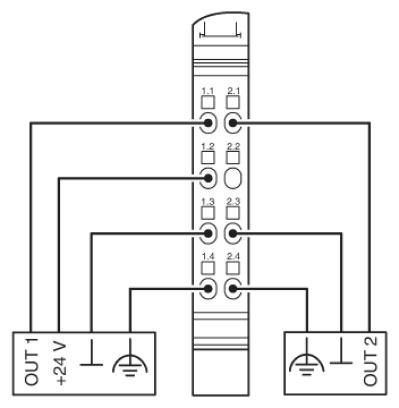 2 digitale AusgängeAnschluss der Aktoren in 2-, 3- und 4-Leitertechnik