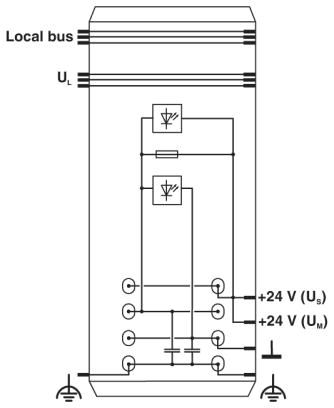 Einspeisung der 24 V Hauptspannung UMBereitstellung der 24 V Segmentspannung US