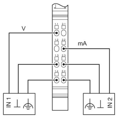 Anschluss der Sensoren in 2- oder 3-LeitertechnikTyp: IB IL AI 2/SF-ME
