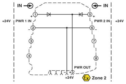 Zur Einspeisung der Versorgungsspannung über das Fußelement (Tragschienen-Busverbinder) bei bereits vorhandenen DC-Spannungen bis 30 VFür bis zu 2 A
