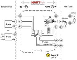 Über DIP-Schalter zuschaltbarer 250 O-Widerstand zur Erhöhung der HART-Impedanz bei niederohmigen SystemenBis SIL 2 nach EN 61508
