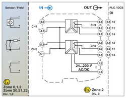 Bis SIL 2 nach EN 61508Installation in Zone 2, Zündschutzart "n" (EN 60079-15) zulässig
