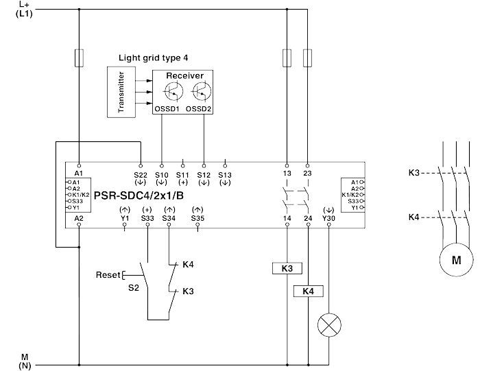 Bis Kat.4/PL e nach ISO 13849-1, SILCL 3 nach IEC 62061, SIL 3 nach IEC 61508Ein- und zweikanalige Ansteuerung