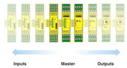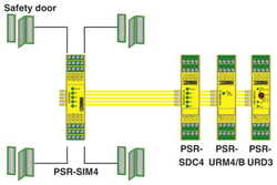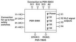 4 zweikanalige Schließer-/Öffner-EingängeBis Kat.3/PL d nach ISO 13849-1, SILCL 2 nach IEC 62061, SIL 2 nach IEC 61508 (in Verbindung mit dem Master PSR-SDC4)