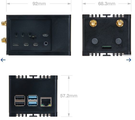 Der WisGate Developer D4 (RAK7244) ist ein Nachfolger des WisGate Developer D3 (RAK7243). Dieses Gerät besteht aus einem Raspberry Pi 4, einem RAK2245 Pi HAT, der ein GPS-Modul und einen Kühlkörper für eine bessere Leistung und ein besseres Management der Wärmeableitung enthält, sowie einem optionalen RAK2013 Cellular Pi HAT. Sein Gehäuse ist komplett aus Aluminium gefertigt.