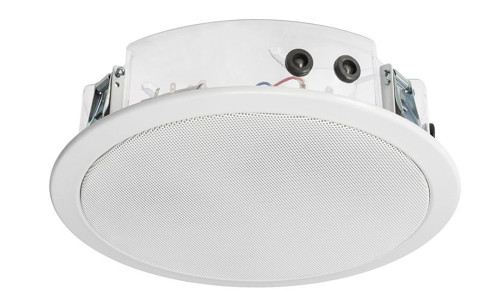 Die kompakte Bauweise mit nur 68 mm Einbautiefe und rückseitiger antistatischer PET-Kunststoffabdeckung macht den Lautsprecher zur perfekten Lösung bei begrenzten Deckenzwischenräumen. Die Montage per Federschnappverschluss ist werkzeuglos und für Deckenstärken von 3–45 mm geeignet. Zusätzlich ist das Modell mit zwei 2-poligen Keramikklemmen mit Thermosicherung, Feuchtigkeitsimprägnierung und einem erweiterten Temperaturbereich ausgestattet – ideal für anspruchsvolle Betriebsumgebungen.