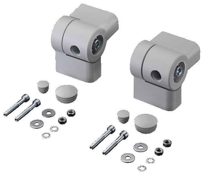 Einbaumöglichkeiten: Verbinderhälften an beiden Seiten vormontieren, ineinanderschieben und mit Arretierschraube befestigen bzw. Schwenkwinkel einstellen