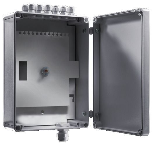 LWL-Kleinverteiler aus glasfaserverstärktem Polycarbonat zur Aufnahme