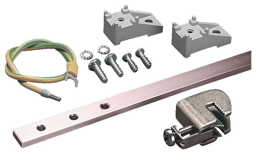 Beschreibung: Die Montage am 25 mm DIN-Maßraster der Verteiler oder an den 482,6 mm (19?)-Profilschienen ist leicht möglich. Mit den beigelegten Erdungsleitern können die Kabelabfangbügel der Patch-Panel sternpunktförmig geerdet werden. Die Erdungsklemmen sind variabel verstellbar. Strombelastbarkeit der Schiene ca. 200 A.