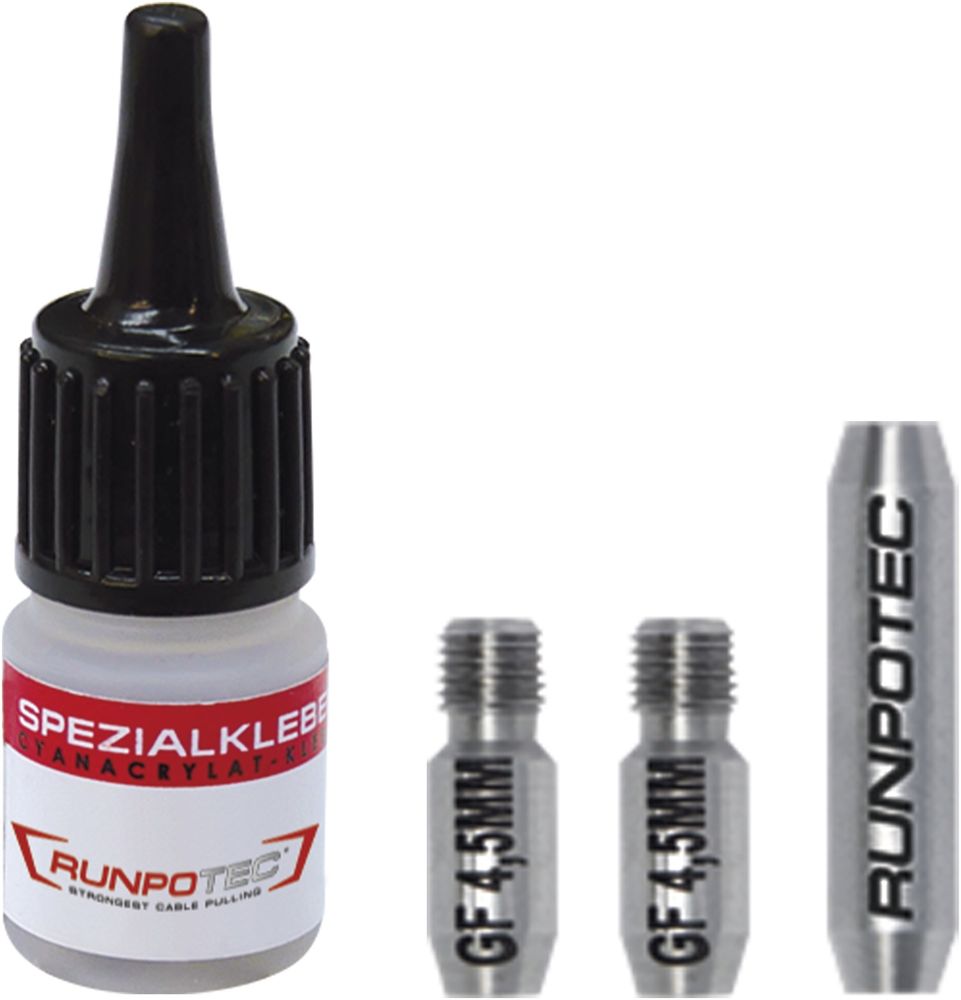 Lieferumfang: 1 x Spezialkleber 3 g, 2 x Endhülsen GF4, 1 x Verbindungshülsen GF4