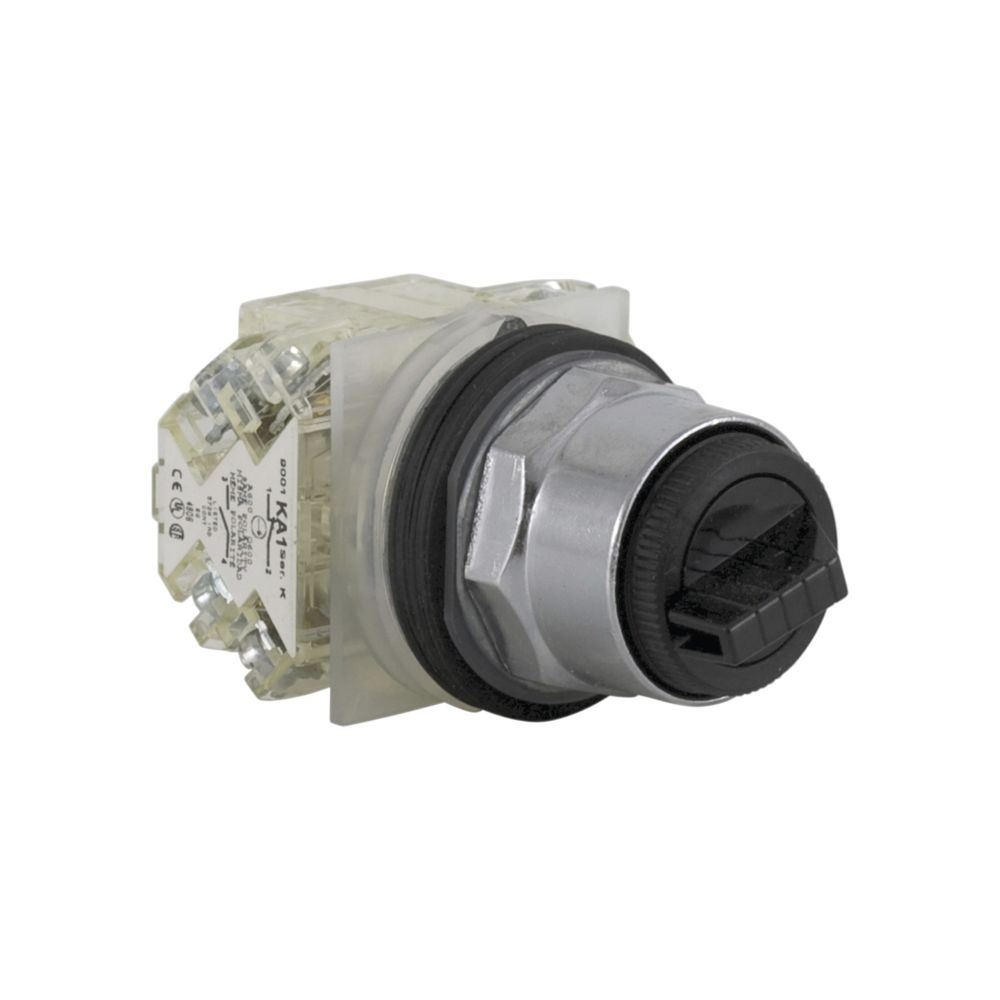 Schneider Electric 9001KS43BH2 Schneider Wahlschalter 2S+2Ö schwarz mit Knebel 3Stell. Metall D30mm