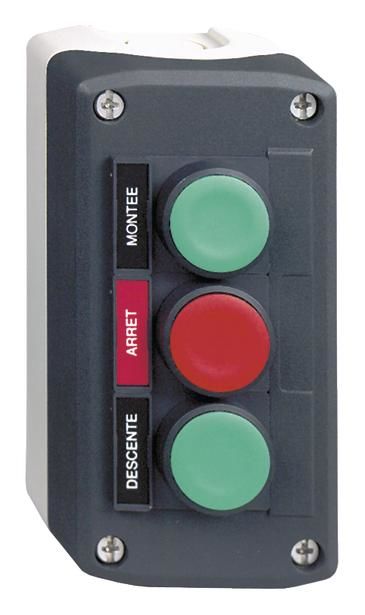 Schneider Electric XALD321 Schneider Gehäuse Schild MONTEE DESCENTE grün und ARRET rot 1Ö2S 3Taster