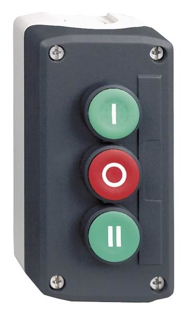 Schneider Electric XALD339 Schneider Gehäuse 3Druckt. 2S+1Ö flach Bez.I grün Bez.O rot Bez.II grün