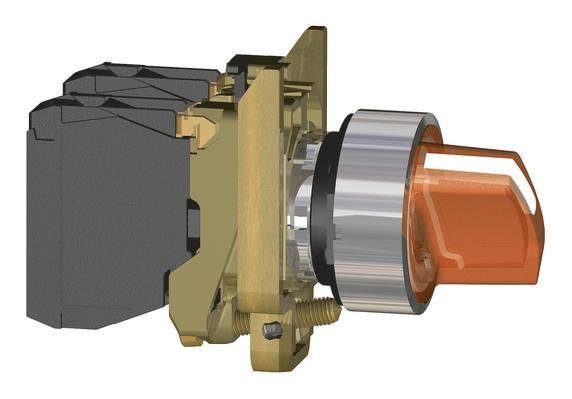 Schneider Electric XB4BK134B5 Schneider Leuchtwahlschalter 1S1Ö rot LED 24VUC 3St. 45° Knebel kurz