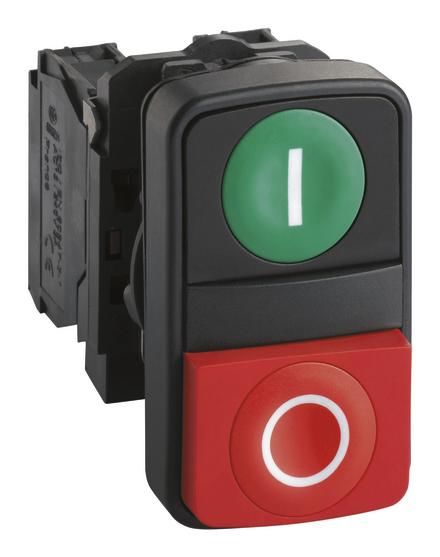 Schneider Electric XB5AL73415 Schneider Doppeldrucktaster Bez.I flach grün Bez.O rot vorst. Kunst.