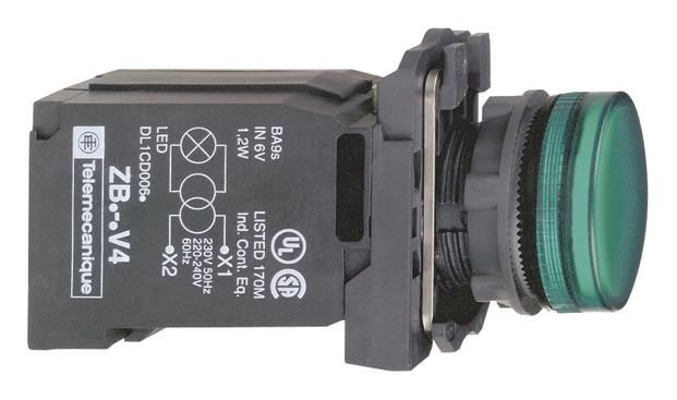 Schneider Electric XB5AV33 Schneider Leuchtmelder grün BA9s 120VAC Trafo 1,2VA Kalotte glatt Kunst.