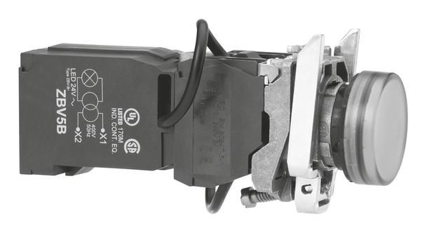 Schneider Electric XB5AV5B1 Schneider Leuchtmelder weiß LED 400VAC Trafo 1,2VA Kalotte glatt Kunst.