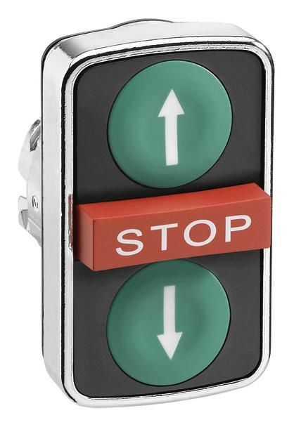 Schneider Electric ZB4BA73134 Schneider Dreifachdrucktaster Pfeil hoch gn STOP rt vorst. Pfeil runt.