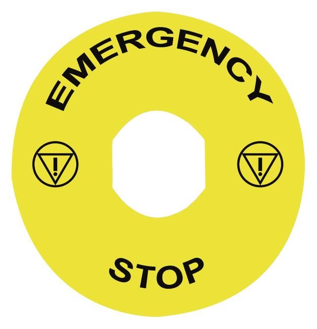 Schneider Electric ZBY8330 Schneider Schild 90mm gelb EMERGENCY STOP für Pilzdruckt. Not-Halt