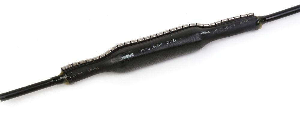 Die 3MT Warmschrumpf-Fernmeldeverbindungs- und Abzweiggarnitur FVAM eignet sich für alle gefüllten und ungefüllten Fernmelde- und Signalkabel ohne Druckluftüberwachung. Die Garnitur entspricht den 'Technischen Lieferbedingungen der Deutschen Telekom AG'. Die mitgelieferte Schutzeinlage dient als Wasserdampfsperre sowie zum Schutz des Kabelspleißes vor zu großer Wärmeeinwirkung und zum mechanischen Schutz. Dabei zeigt eine außen auf der Manschette befindliche Beschichtung mit Temperaturindikatorfarbe die Beendigung des Schrumpfvorganges durch einen Farbumschlag an. Eine nichtrostende Verschlussschiene verhindert ein Öffnen bzw. Verziehen der Manschette beim Schrumpfen. Der Lieferumfang der Verbindungs- und Abzweiggarnitur beinhaltet eine wärmeschrumpfende Manschette mit Temperaturindikatorfarbe, Verschlussschiene, Schutzeinlage, Schirmverbinder- und Verbindungsleitung, Kabelreinigungstuch, Schmirgelleinen und die Montageanleitung. Ein Abzweigsystem ist im Lieferumfang nicht enthalten.