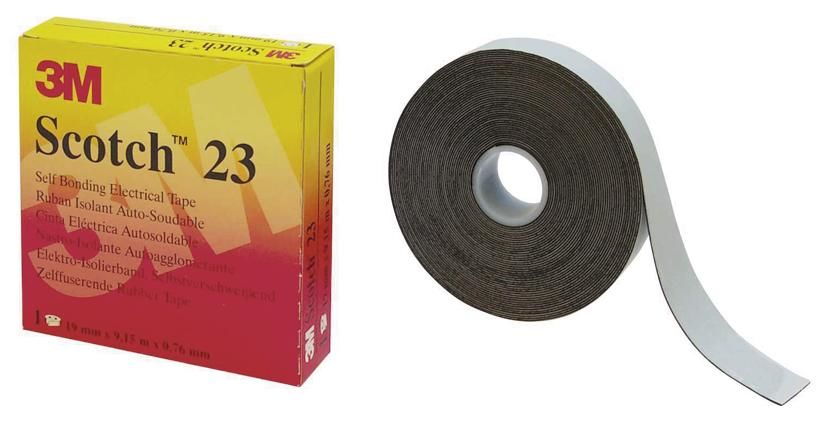 Selbstverschweißendes Kautschukband 23 kann sowohl zur Isolierung bei Nieder- und Hochspannungsanwendungen als auch für Verbindungen bis 69 kV genutzt werden. Dieses dicke, extrem anpassungsfähige, auf selbstverschweißendem EPR (Ethylen-Propylen-Kautschuk) basierende Klebeband ist bis zu 100 % dehnbar für hohlraumfreie, feuchtigkeitsbeständige Isolierung. Es ist nicht vulkanisierend, beständig und besitzt hervorragende elektrische Eigenschaften. Ausgestattet mit einer speziellen Polyester-Schutzabdeckung, die beim Abwickeln nicht klebt, ist dieses Klebeband ideal für die Feuchtigkeitsabdichtung elektrischer Verbindungen.
