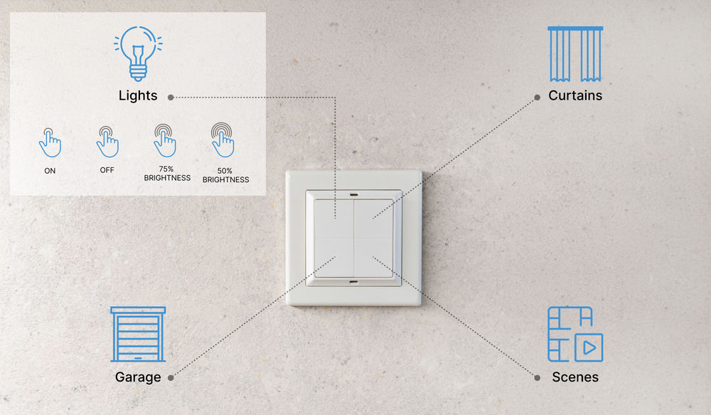 Shelly · Plug & Play · Blu Wall Switch 4 · Wandtaster · 4-fach · 16 Aktionen · Weiß